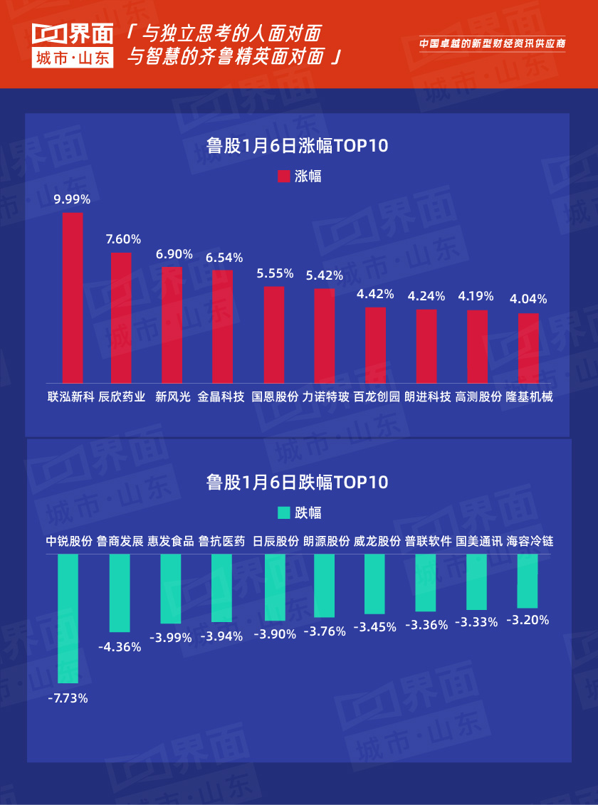 1月6日,山东省内沪深京股票有107只个股上涨,168只个股下跌;总市值过千亿的有万华化学(600309)、海尔智家(600690)、 兖矿能源(600188)、青岛啤酒(600600)、中航沈飞(600760)共5家,500亿-1000亿的共有6家,分别是潍柴动力(000338)、山东黄金(600547)、华鲁恒升(600426)、华熙生物(688363)、华电国际(600027)、歌尔股份(002241)。