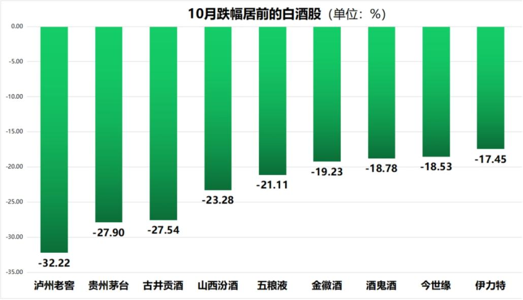 从2022年7月份开始,A股白酒指数连续4个月下跌,贵州茅台10月份下跌27.9%,其他头部白酒股价也大跌,市场恐慌情绪蔓延。