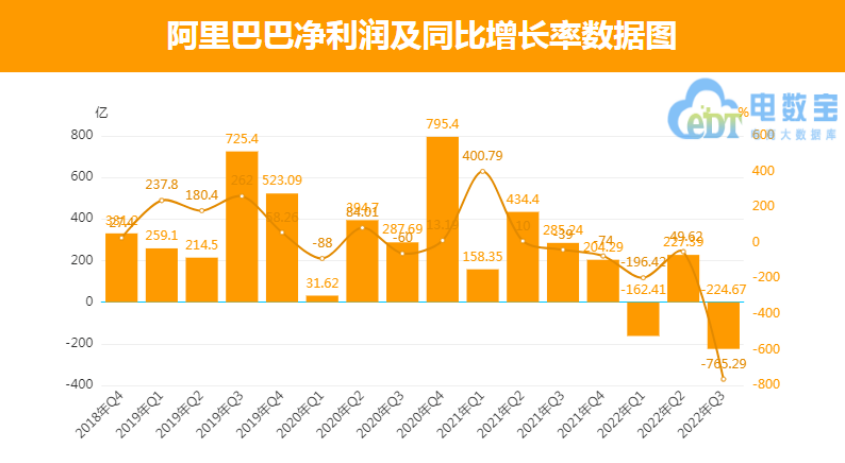 更关键的是,从利润来看,阿里巴巴第三季度归属于普通股股东的净亏损为205.61亿元,净亏损224.67亿元,而2021年同期的净利润为33.77亿元。