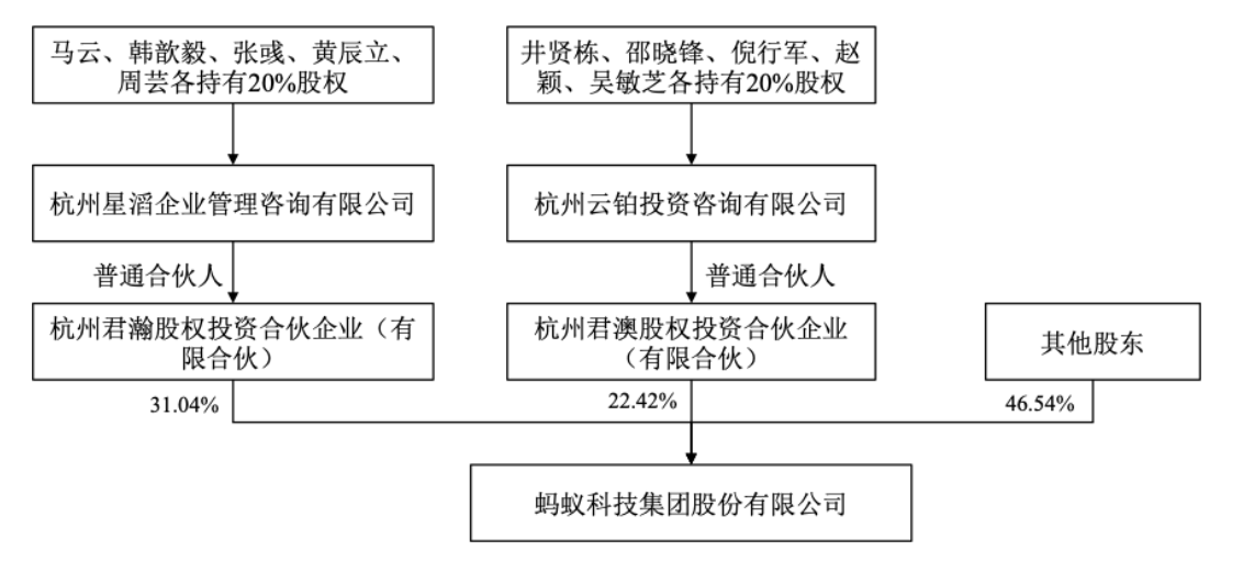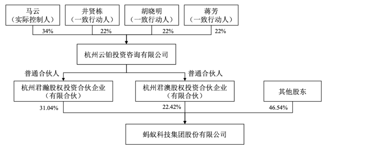 具体而言:马云及其一致行动人已签署协议,终止在杭州云铂层面的一致行动关系。同时,蚂蚁集团的主要股东杭州君瀚和杭州君澳由受同一家普通合伙人企业(杭州云铂)控制,分拆为受两家不同普通合伙人企业(杭州云铂和杭州星滔)分别控制;相关普通合伙人公司股东由马云及其一致行动人,变更为蚂蚁集团管理层、员工代表和创始人马云的组合。根据公告,杭州云铂和杭州星滔作为君瀚君澳的普通合伙人,不享有任何来源于蚂蚁集团的经济利益。