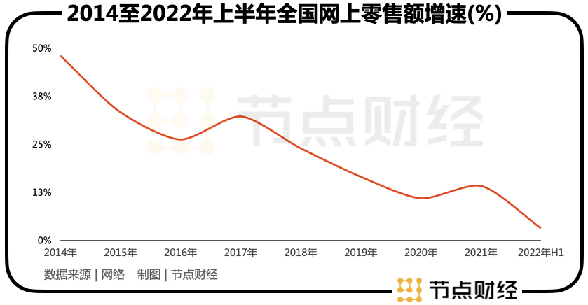 这在无形中,加剧了国货化妆品企业们在线上渠道方面的压力。随着线上流量增长的趋缓,这番压力有可能将进一步增大。Wind数据显示,2014年全国网上零售额增速为47.99%,而到2022年上半年,这一数字已经滑落到3.1%。其中,以淘宝、京东为代表的电商平台又受到来自抖音、快手等短视频内容平台的侧面打击。国内互联网与此前高速发展的红利期渐行渐远,对珀莱雅等化妆品企业而言,同样意味着更高的获客成本、更贵的营销费用。