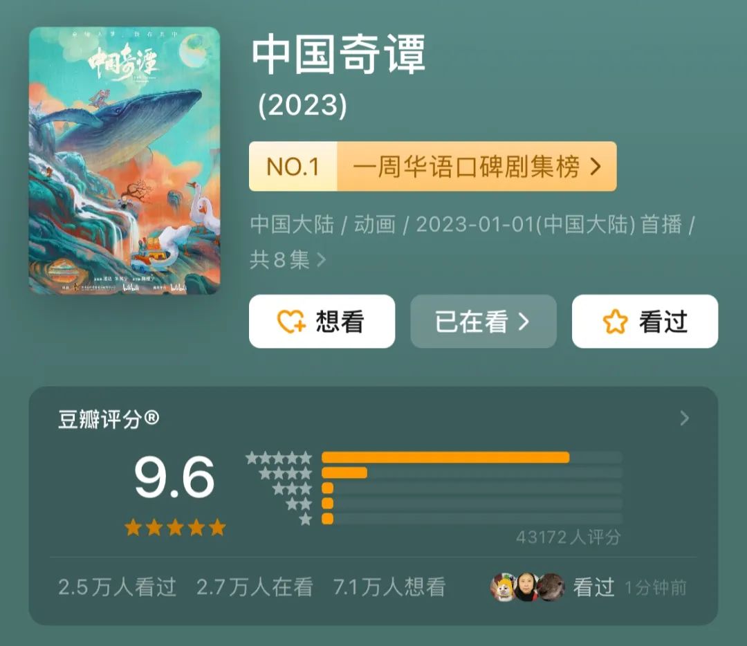 由上海美术电影制片厂出品,陈廖宇担任总指导,速达,朱贝宁监制的中式奇幻动画短篇集《中国奇谭》,于元旦正式在哔哩哔哩上线,播放量仅四天,就突破了一千万大关,豆瓣开分更是达到了9.5的高分,关于该剧的讨论也层出不穷,可谓是火到出圈。