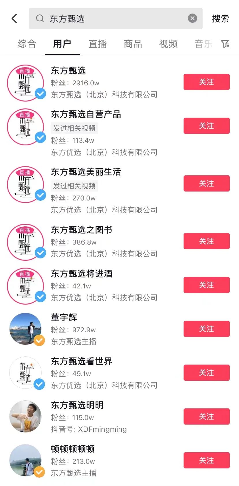 此外,东方甄选也和交个朋友一样,开设了多个垂类直播间,其中东方甄选之图书、东方甄选美丽生活、东方甄选自营产品三个账号粉丝量已经突破百万。