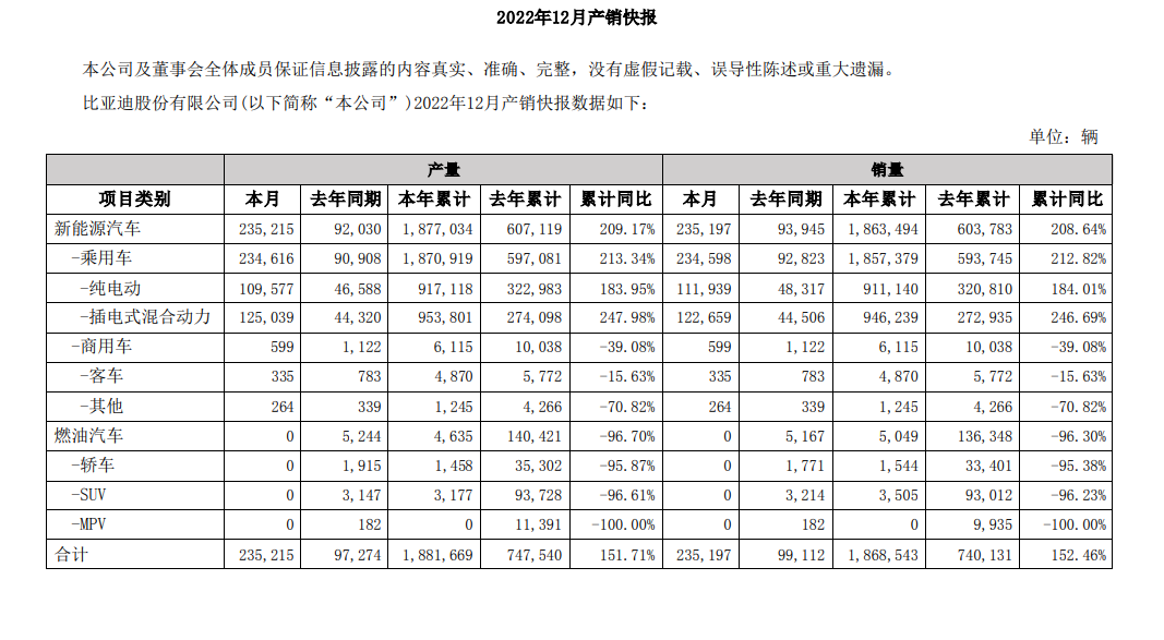 吃到市场增长红利的品牌,当属比亚迪,2022年是全球销冠王,全年累计销售185.26万辆,同比增长208.64%。