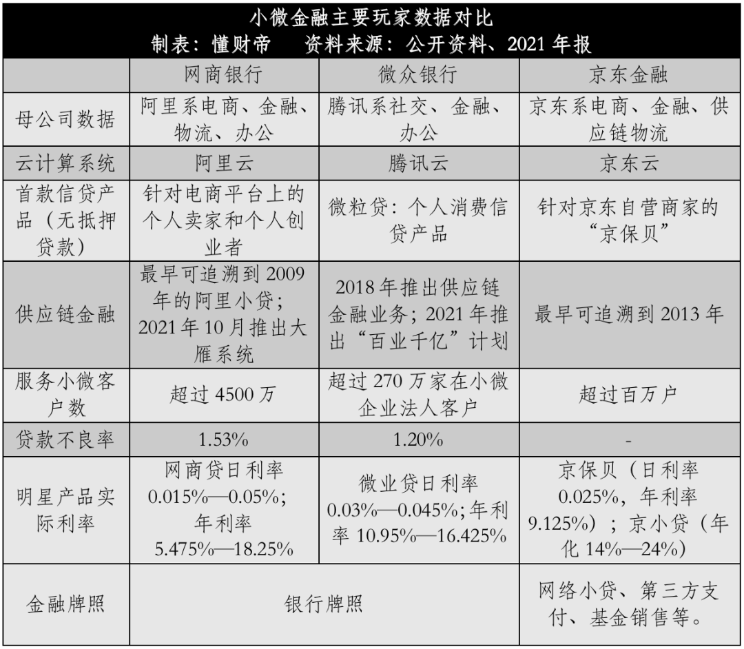 最后总结来看,阿里系数据池更深厚、更多维,网商银行在小微金融领域扎得更深,其服务的小微客户规模也更多,但其不良率值得关注。