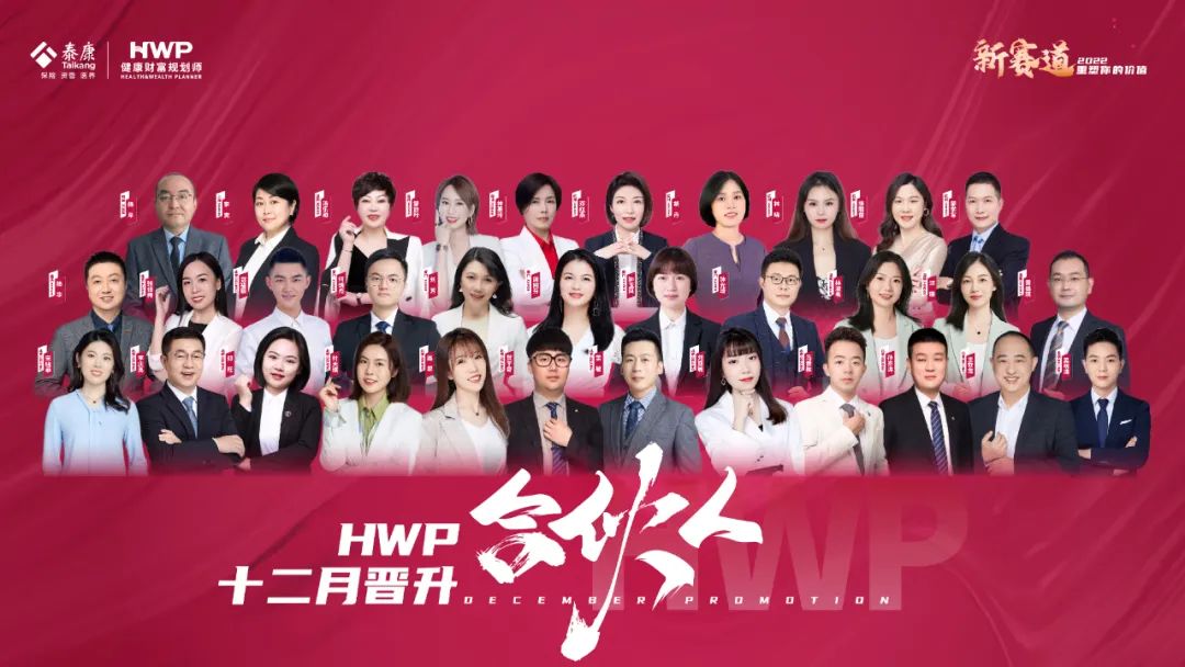 自2022年6月起,泰康人寿HWP基本法落地,目前全国已晋升133位“HWP合伙人”称号绩优,HWP新职业再上层楼。