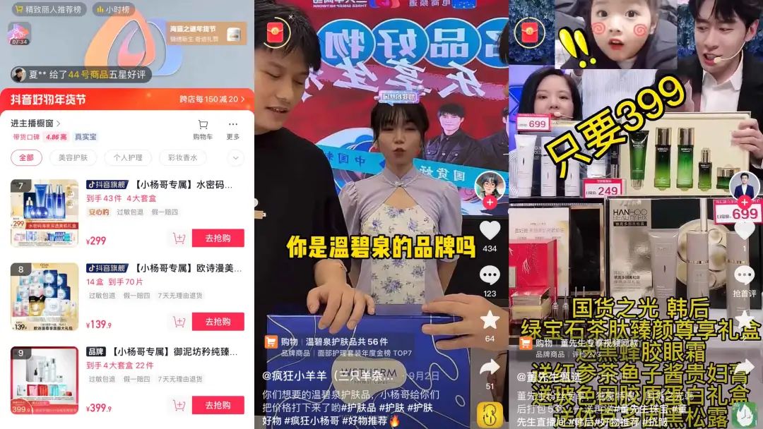 图:水密码、温碧泉、韩后活跃于红人直播间 截图自抖音