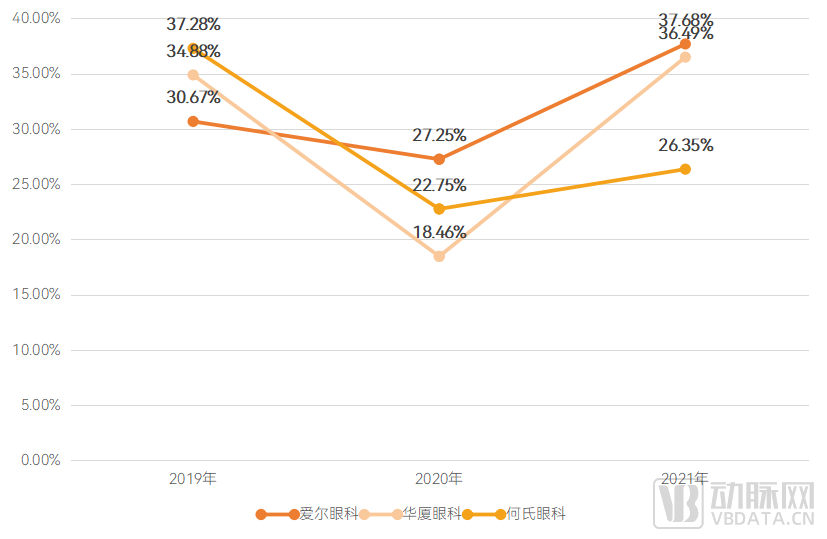 几家眼科连锁机构的视光服务收入增速,数据来源:公司财报或招股书