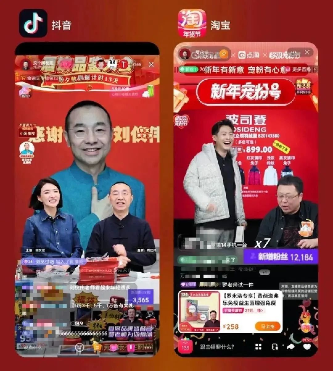 图/图左为抖音直播间,图右为淘宝直播间,来源/燃次元截图 时间:2023年1月8日晚11点