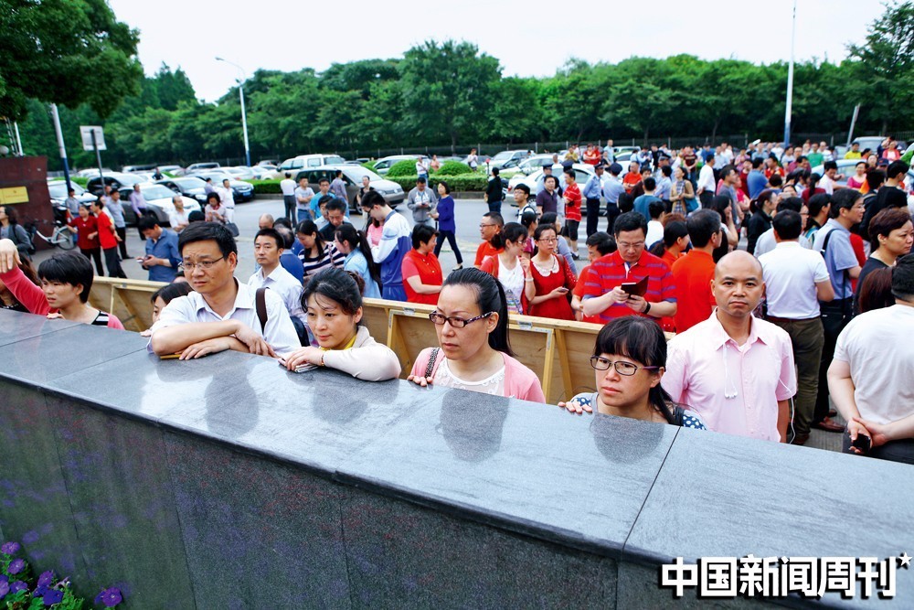 2015年6月7日,上海市普通高校秋季招生文化考试七宝中学考点大门口家长渴望的眼神。图/IC