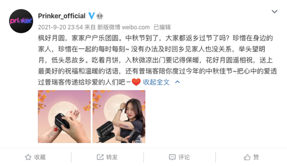 Prinker(普瑞客)中国官网还显示,品牌曾开设微博、微信和抖音账号。其官方账号@Prinker_official在2018年09月04日进驻新浪微博,但在2021年9月20日停止更新。其微信公众号的最后一条更新也止步于2021年3月8日。