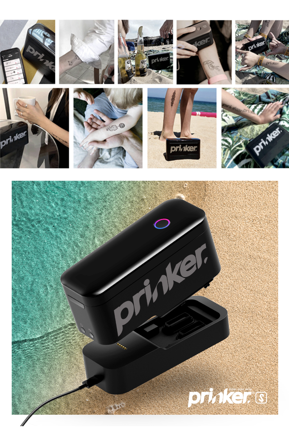 Prinker一次性纹身机,为广大想纹身,又担心洗掉麻烦的纹身爱好者们提供全新的纹身体验,使用者可以用纹身机将自己喜爱的图像即时打印在皮肤上,清洗便捷,旨在激励消费者提供自我表达的新工具。