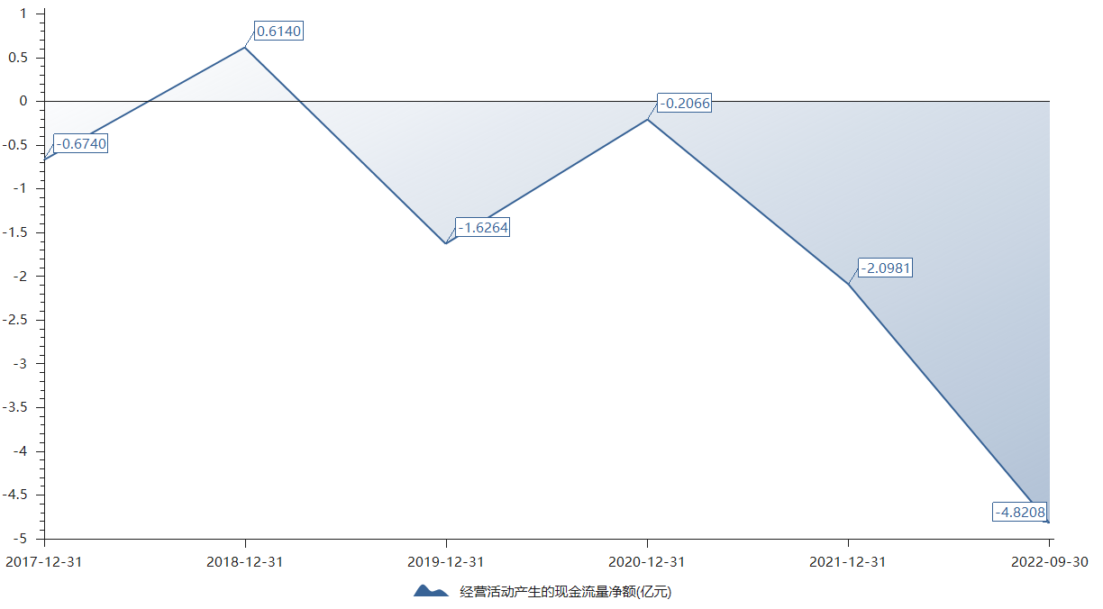 仕净科技2022年前三季度营收10.43亿元,归母净利为0.58亿元。经营性现金流净额已连续4年为负,2021年末为-2.01亿元,2022年三季末这一数字创新新低,为-4.82亿元。这也意味着自2021年以来公司归母净利或也仅是纸面财富。
