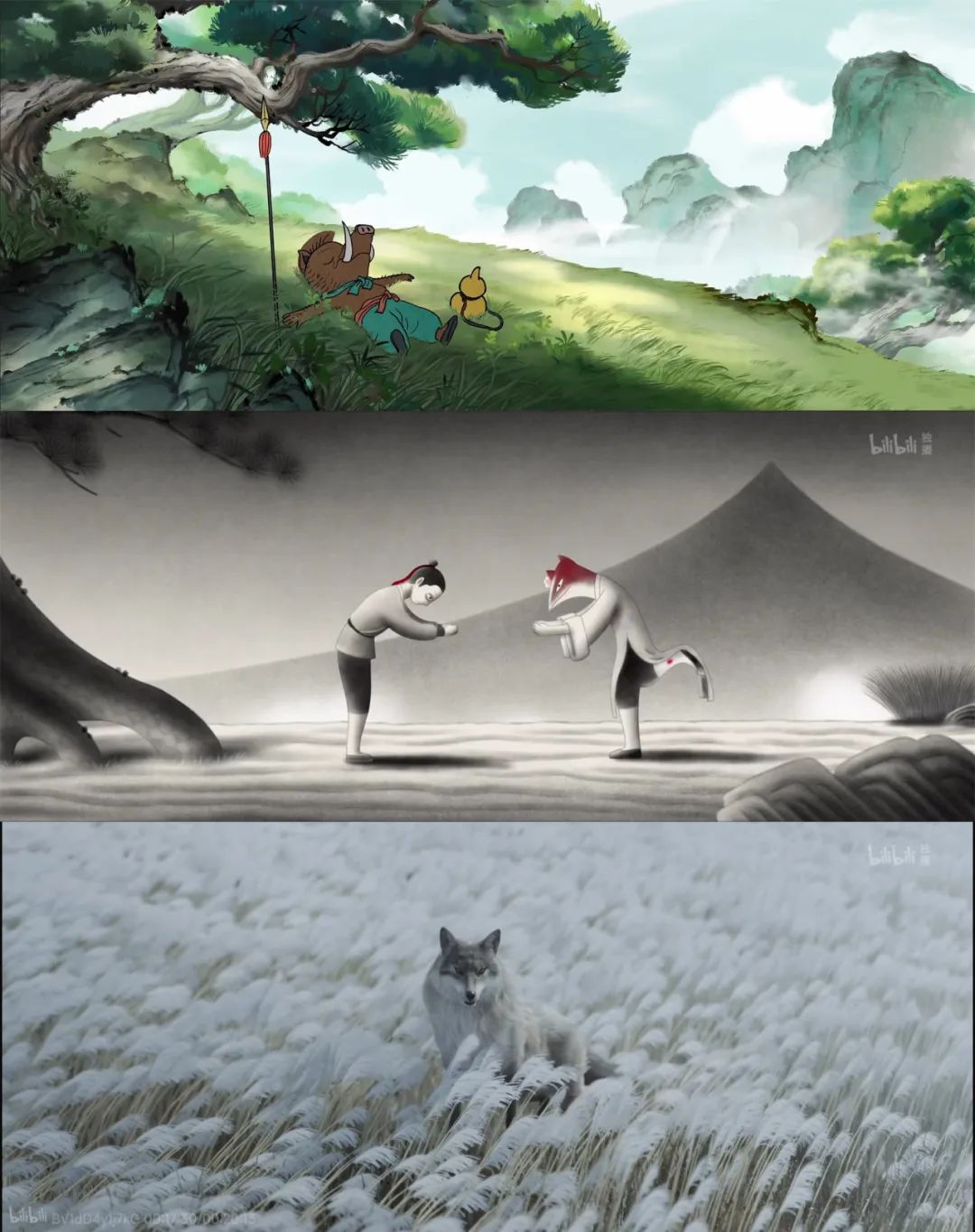 时至今日,曾经打造了《大闹天宫》《哪吒闹海》,又为80、90后童年留下过《魔方大厦》《葫芦娃》《黑猫警长》等经典的上美影,在B站上仍然不乏拥趸,《鹅鹅鹅》里的独脚狐妖亮相,弹幕瞬间刷起“《天书奇谭》里的狐狸阿拐!”