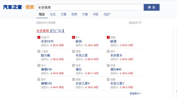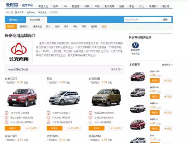 各汽车网站车型库还是长安商用品牌