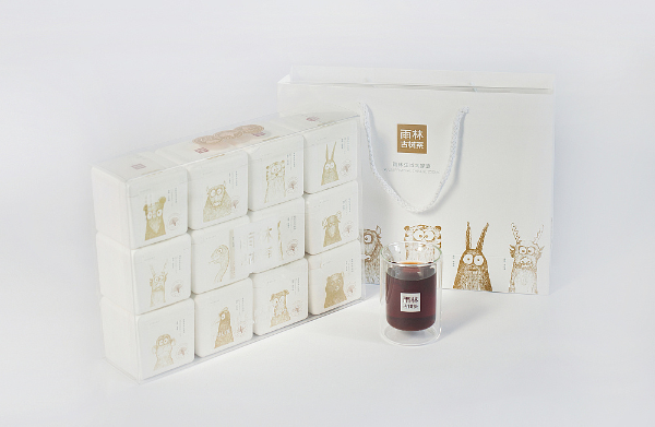 包装设计对插画的颜色做了脱色处理,让整个商品系列更具统一感;但同时保留了画家细腻的笔触,尤其是动物们眼睛的部分,活灵活现。白色的纸包装优雅地衬托了插画,更添静谧的感觉。在午间饮茶,温和的阳光透过清澈红亮的茶汤照在浅白色的茶包和茶色的动物插画上,像是为孤独的内心照进了一丝温暖。
