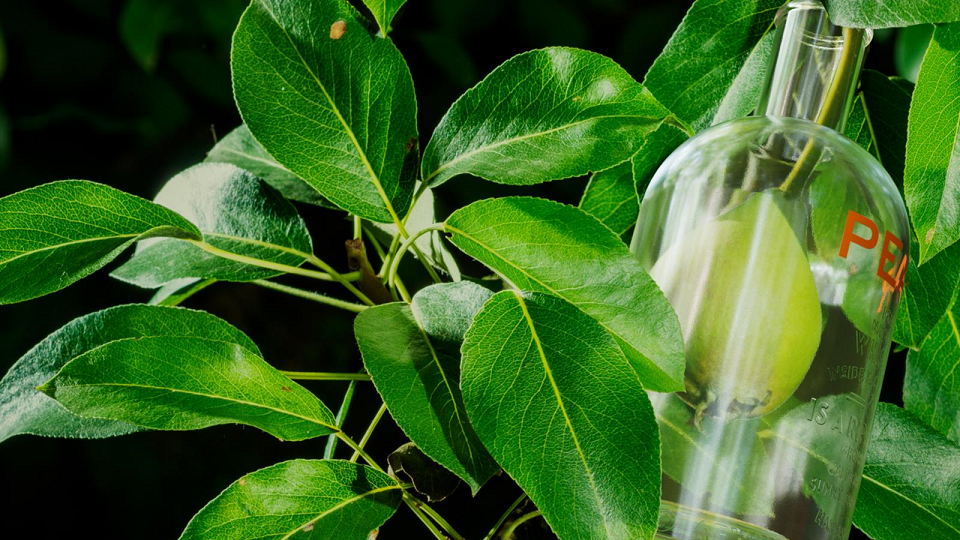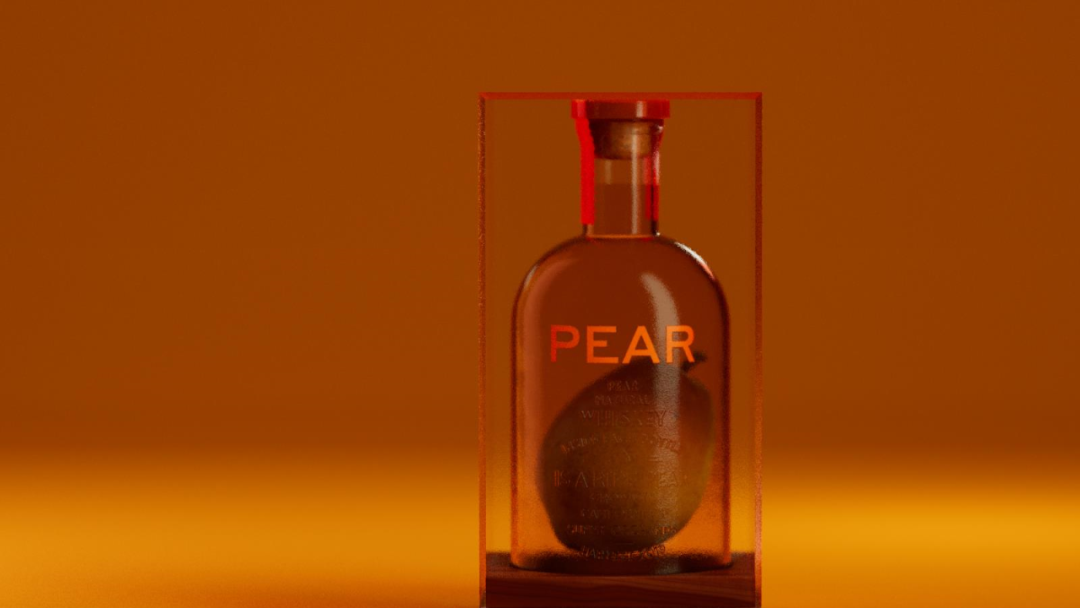 这款梨威士忌的品牌名就是PEAR(梨),在加利福尼亚的阳光下生长成熟的甜美梨子,是设计师希望强调的最大卖点。特别的是,每一枚梨子都分别在玻璃瓶中被培育长大,所以梨的外形都得到了精致的塑造,趋于梨子“完美”的形态。