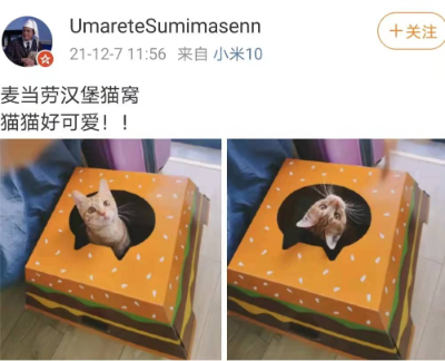 不止喜茶,麦当劳似乎也懂得如何让铲屎官们欢呼雀跃。汉堡盒变身猫窝,竟然可以这么可爱!