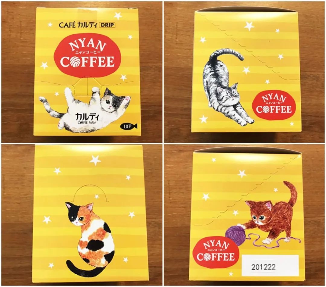 如果在世界范围内评选最爱猫咪人士,候选人中一定有把每年2月22日叫做“猫之日”的日本人。日本咖啡品牌Kaldi推出了一款猫咪主题的「NYAN COFFEE」挂耳咖啡,其中“Nyan"是猫咪叫声”喵“的日语发音。