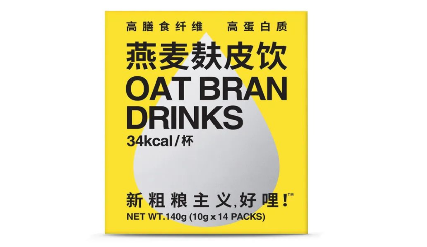 比如在去年5月份,健康食品品牌Wholly Moly!好哩!推出的一款“好哩燕麦麸皮饮”。据悉,产品选用燕麦麸皮,不添加香精、色素、甜味剂,具有高纤、高蛋白的特点。官方表示,100g燕麦麸皮饮约等于1斤魔芋的膳食纤维含量加上2个鸡蛋的蛋白质含量,一杯燕麦麸皮饮的热量为34大卡,低于一杯250ml牛奶的热量(165大卡)。