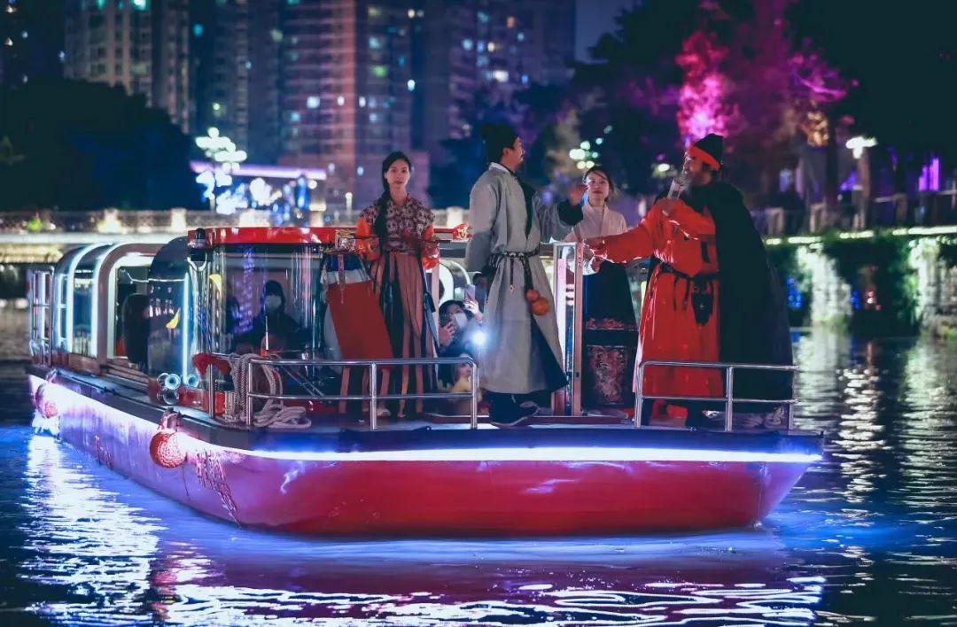 跨年夜,夜游锦江推出了“2023天府文化年·锦江不夜天——乐游锦江沉浸式体验活动”,以沉浸式剧游体验为主线,串联起各类特色活动。元旦假期中夜游锦江吸引游客1.63万人次,实现船票收入30万元,同比增长308%。