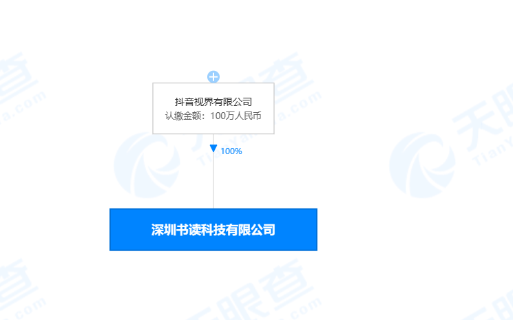 1月11日,天眼查App显示,近日,深圳书读科技有限公司成立,法定代表人为莫少君,注册资本100万元,经营范围包括软件开发;计算机系统服务;电影发行;电视剧制作;会议及展览服务;网络文化经营等。股东信息显示,该公司由抖音视界有限公司全资持股。