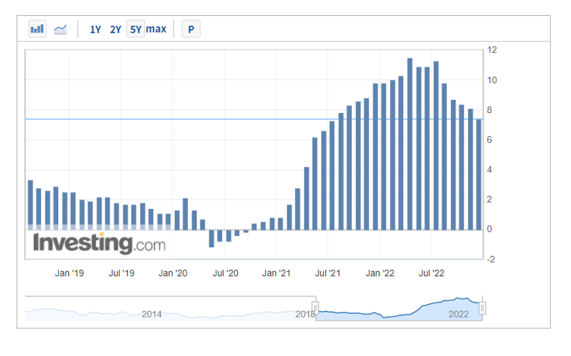 短短几个月,特斯拉的价格便急转直下,不得不说,马斯克的态度变得比翻书还快。从马斯克常常挂在嘴边的“通胀”角度来看,在美联储的大幅加息下,自去年8月开始,美国的PPI(生产者物价指数)年率确实出现了放缓迹象,生产资料通胀有所降温。