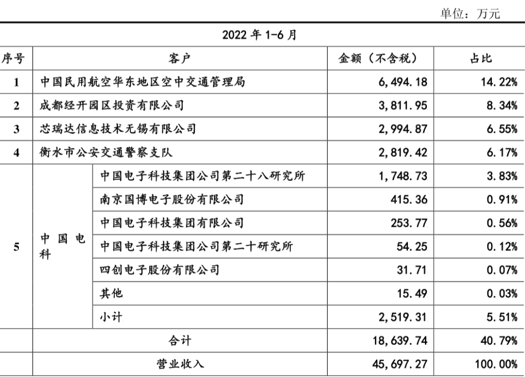 从招股书披露的大客户信息来看,民航空中交通管理业务也是莱斯信息的核心业务。