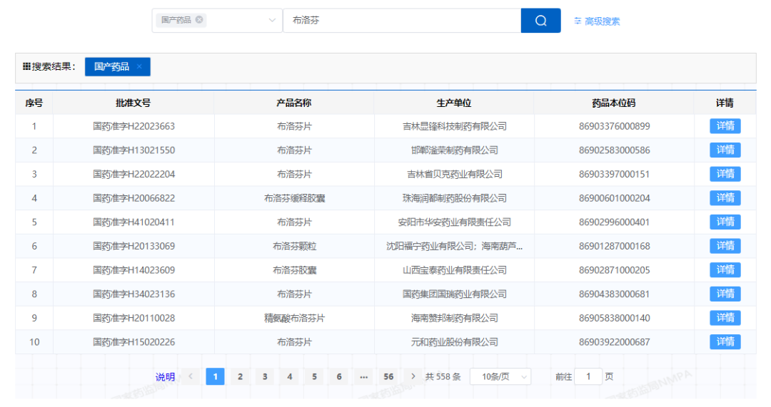 根据国家药监局页面搜索结果显示,目前中国制药生产企业中拿到布洛芬(涵盖了布洛芬片、布洛芬软胶囊、布洛芬缓释胶囊、布洛芬颗粒等众多剂型)批准文号的数量多达558个。
