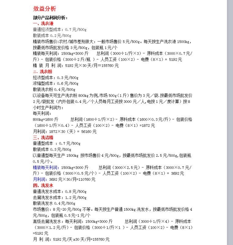 据小车向该客服了解,根据设备产能的大小,设备被分为家庭型、普通型、工厂型三类,价格从6800~39800元不等。而一台价格16800元的普通型设备一天的产能可达到1500kg,按照该客服给出的参考资料:最低市场批发价格3元/500g,包装1元/个、普通经济型原料0.7元/500g、工人2名的成本费用来计算,其生产精装洗衣液的利润就可达5192元/天。