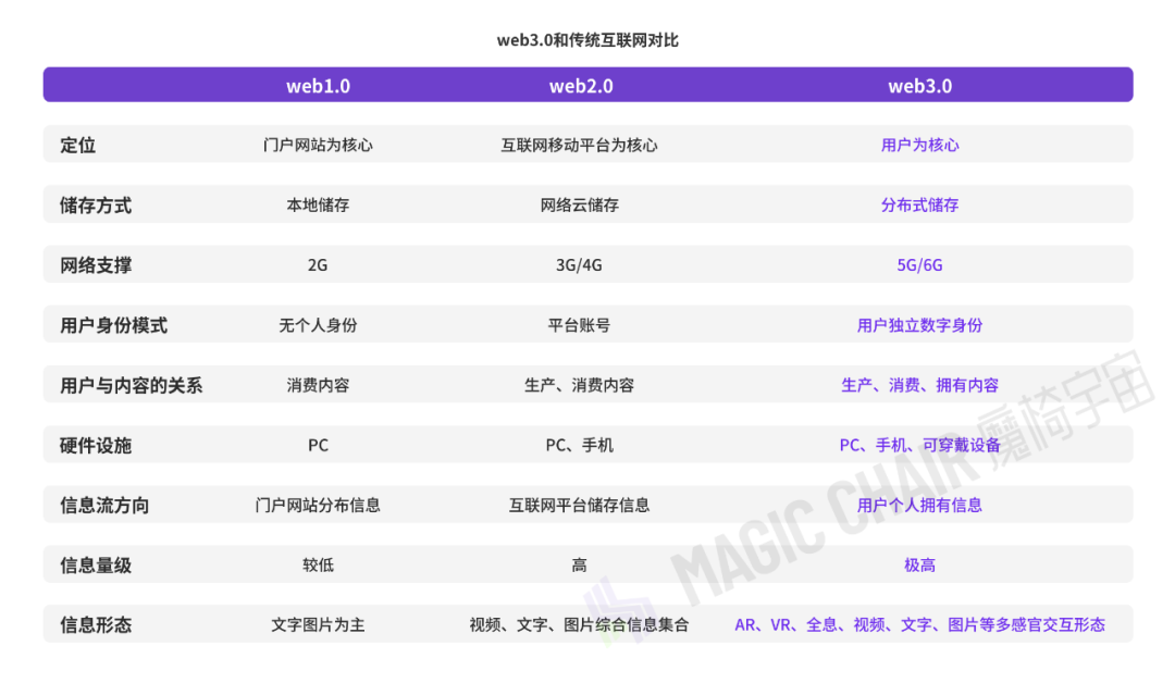 中金在研报中指出,互联网的变迁伴随着技术进步、信息生产关系的改变,而前一代的弊端往往作为后一代革新的驱动力。WEB1.0时代,PC互联网刚开始发展,互联网网民是以有鲜明偏好,有充足表达欲望的用户为主,而不同用户选择不同消费和表达场景构成相对分散的互联网生态;到2.0时代,移动互联网接棒,互联网变成全民级别应用,而聚焦社交、搜索、电商等超级场景的超级应用开始成为市场绝对主体,在上下游拥有较大的议价能力。