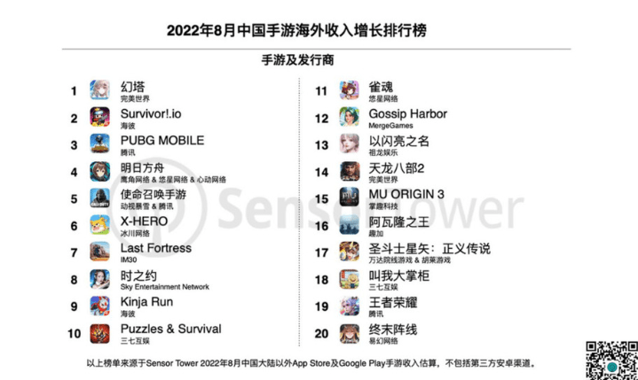 Level Infinite发行的《幻塔国际版》成为8月中国手游海外收入增长冠军