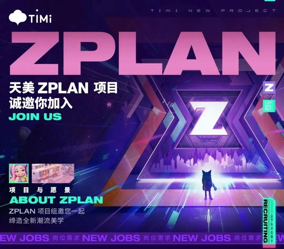 2021年9月,腾讯天美工作室群公开新项目ZPLAN,并对外放出近百个职位。从这张招聘海报的信息来看,ZPLAN的愿景是“缔造全新潮流美学”,涉及技术、设计和产品三大类职位的招聘,工作地涵盖北京、上海和深圳三地。而结合招聘要求里提及的Z世代,ZPLAN的“Z”则被解读为目标用户指向Z世代。更值得关注的是,海报上写着的“TOP SECRET”,也就是最高机密之意。