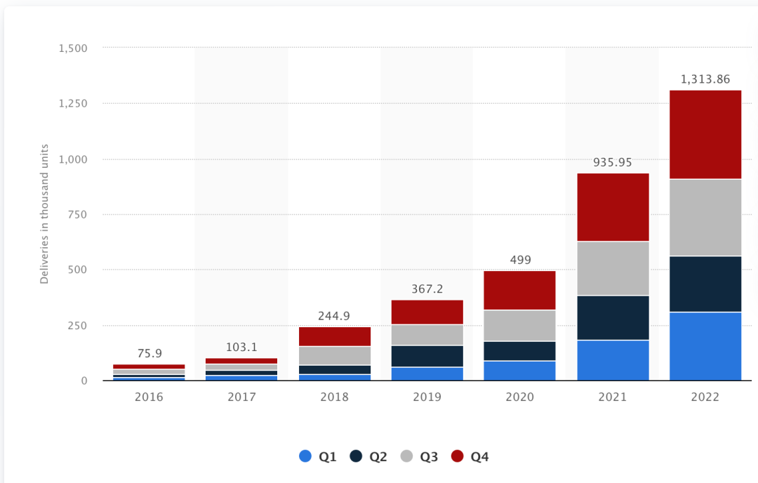 2021年,特斯拉全球销量同比涨幅高达87%,马斯克也立下目标:2022年,特斯拉要再增长50%。最后特斯拉的增速为40%。虽然在整体大环境下这一增长已经非常亮眼,但生意就是生意,市场认定特斯拉增长不及预期。