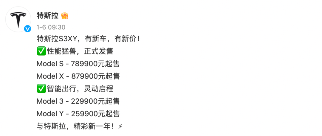 1月6日,特斯拉直接大幅下调国产Model 3和Model Y的售价,分别下调至22.99万元和25.99万元,创下特斯拉历史最低价,其中Model 3的降幅高达3.6万元。