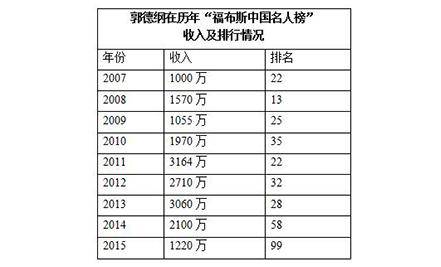 所以,郭连续九年入选福布斯名人榜,出道20年收入增长一万倍自然并不稀奇,自2007年以破千万年收入进入福布斯中国名人榜以来,郭德纲每年收入都保持在千万以上,最高升到近3200万。