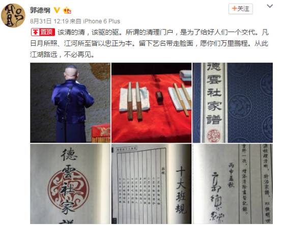 苦日子过惯了,钱很重要,是带来安全感的东西,但在如今的郭德纲看来,更重要的当然是“名”,是在中国相声史上的地位。如果德云社恢复了班社制,郭德纲就是中国相声史排名前三的人物。