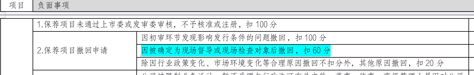 根据最新2022年12月2日中国证券业协会发布的《证券公司投行业务质量评价办法(试行)》,“因被确定为现场督导或现场检查对象后撤回”,证券公司是要扣分的,那么2023年新一轮的抽检,结果又将如何,拭目以待。