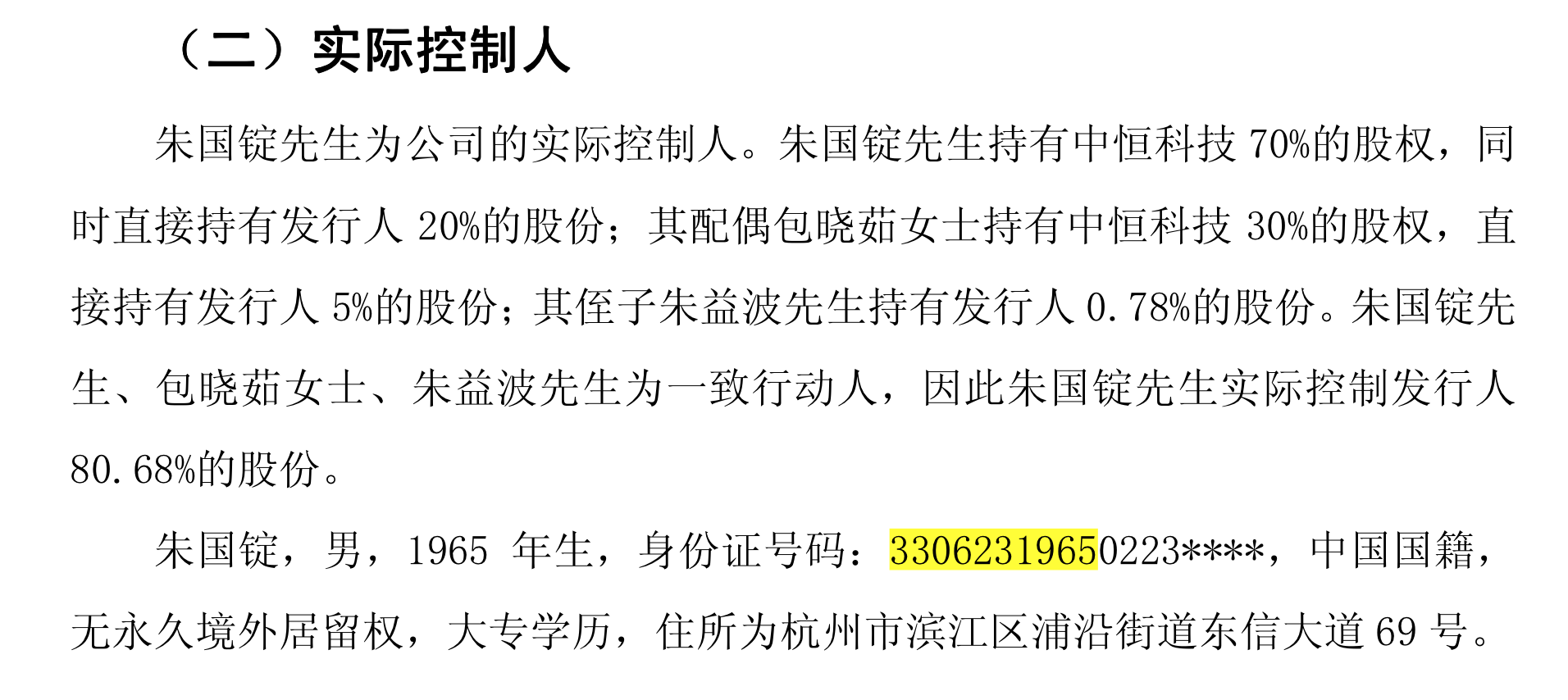 另外值得一提的是,羊绒世家与中恒电气(002364.SZ)颇有渊源 。据悉,蒋庆云、蒋巍父子合计控制羊绒世家90.95%的股份,蒋巍在2012年7月至2013年8月曾在中恒电气当财务。中恒电气实际控制人为朱国锭,而羊绒世家发起人名单中,也刚好有“朱国锭”,持股225万股,占比3.88%,入驻时间为2019年。据查中恒电气的公告,中恒电气实际控制人朱国锭同样是1965年出生,身份证号码前6位相同。
