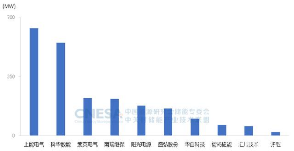2021年,中国新增投运的新型储能项目中,装机规模排名前十位的储能PCS提供商,依次为:上能电气、科华数能、索英电气、南瑞继保、阳光电源、盛弘股份、华自科技(300490.SZ)、智光储能、汇川技术和许继电气(000400.SZ)。