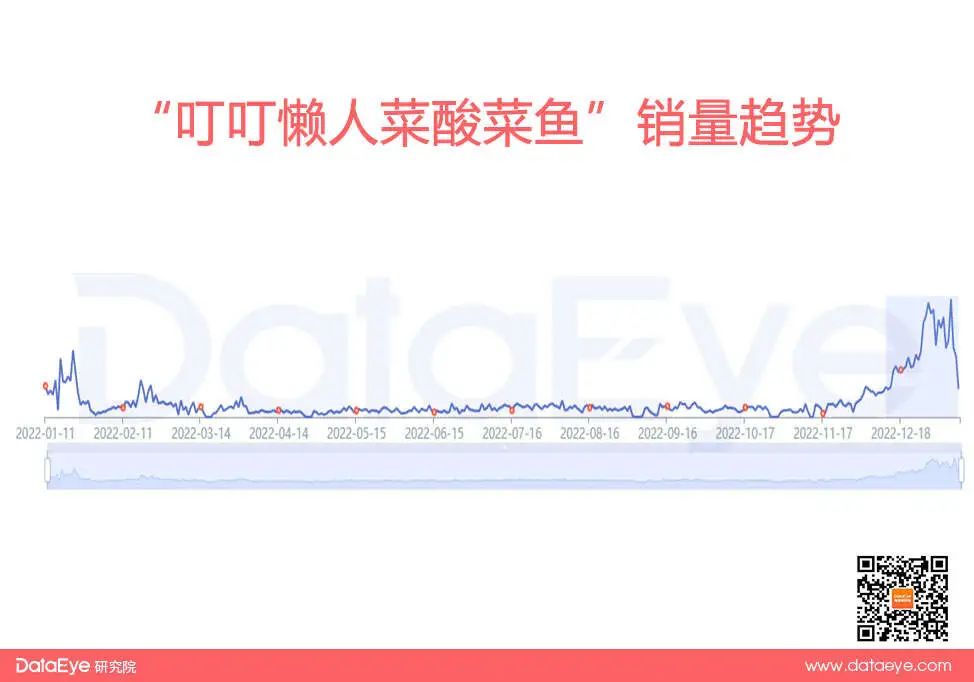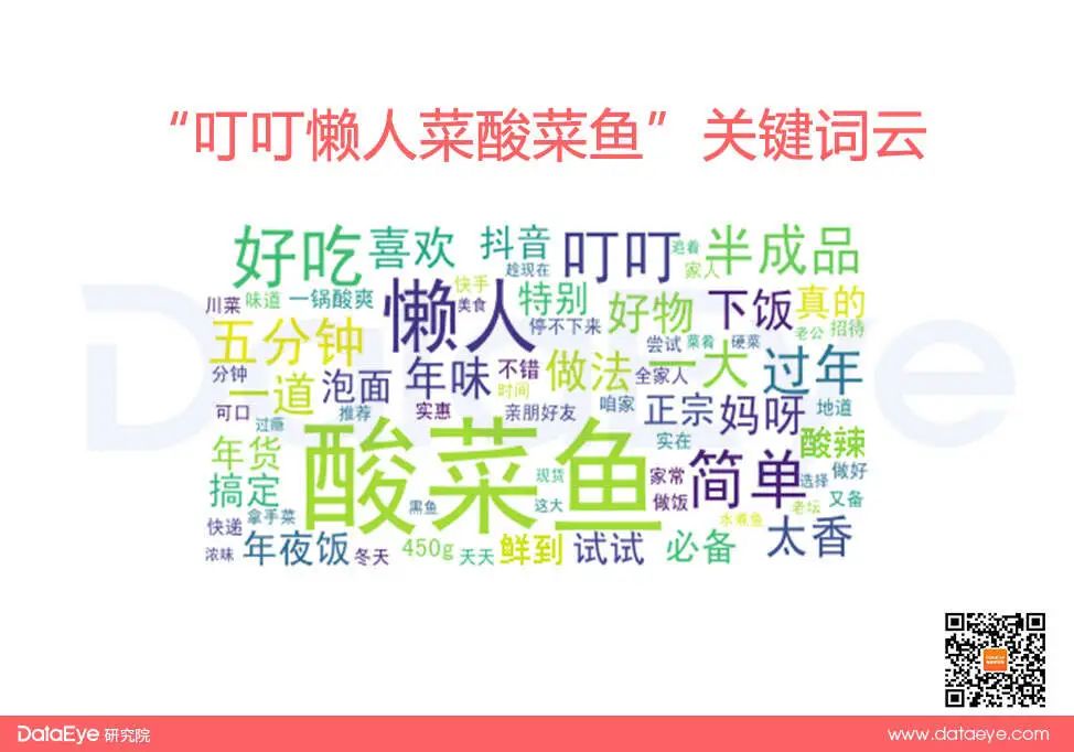 以“叮叮懒人菜酸菜鱼450g*3”这款商品为例,近30天销量达54.3万件,预估总销售额4295万元,该款商品视频带货和直播带货“双管齐下”,生活、美食类的播主为带货主力,同时兼顾搞笑、种草、健康、母婴等多行业,扩大商品的受众辐射面。