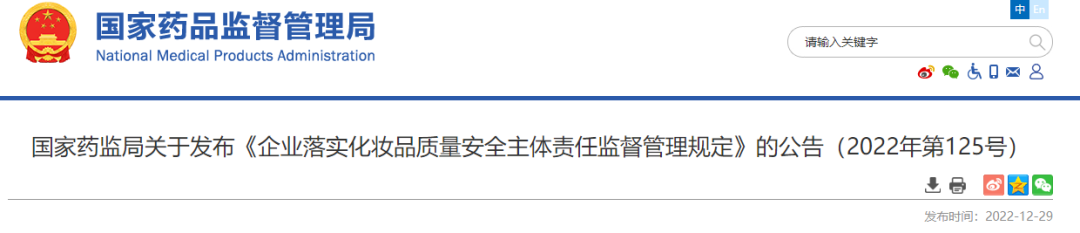 12月份:《企业落实化妆品质量安全主体责任监督管理规定》