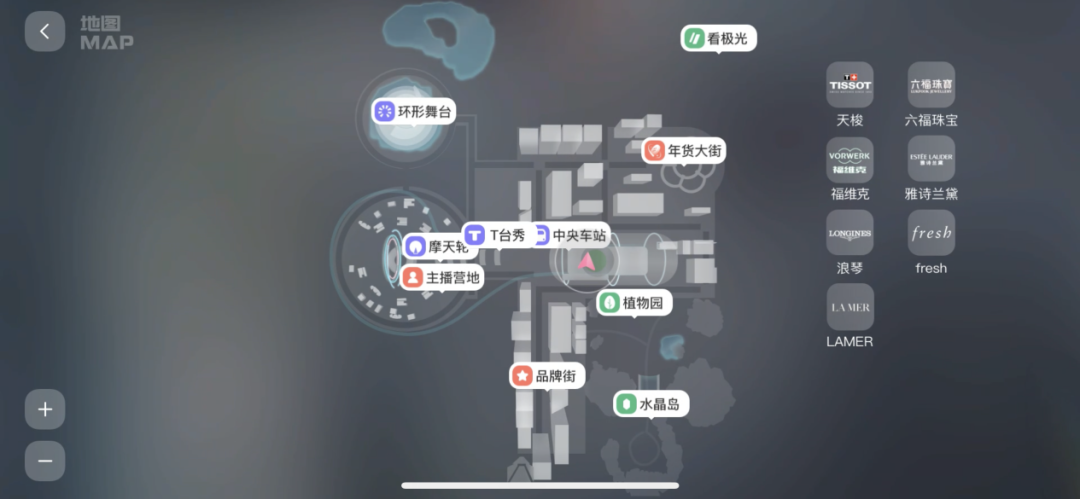 速途元宇宙研究院排队进入“未来城”,虚拟分身是淘宝人生中自拟的形象,能够在年货大街上漫跑,进入不同的店铺中观看直播,或点击商品详情进入到购买页面,点击地图上的位置能实现瞬移到位,简单的界面操作降低了消费者学习的门槛,也能让更多的玩家加入。