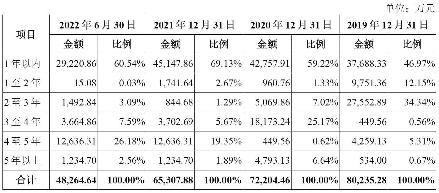 不仅如此,中科合成应收账款余额账龄构成中,1年以上比例超过60%,4年至5年比例竟然超过26%。