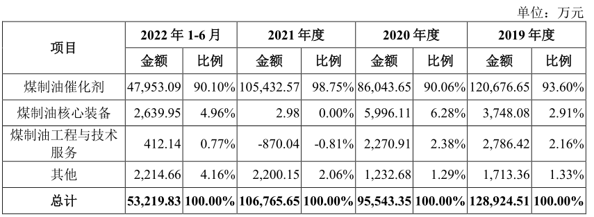 目前公司九成以上收入都来自煤制油催化剂,煤制油催化剂是费托合成中的关键一环, 产品性能直接决定了煤制油的能源转化效率。