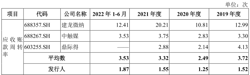 这样的客户结构对企业长期发展显然是不健康的。报告期内,公司应收账款周转率持续低于可比公司平均水平,2019年、2020年和2021年公司应收账款周转率分别为1.52、1.25和1.55。