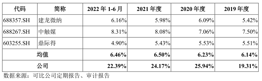 中科合成管理费用率大幅高于同业,2021年为24.17%,可比公司均值则为6.5%。