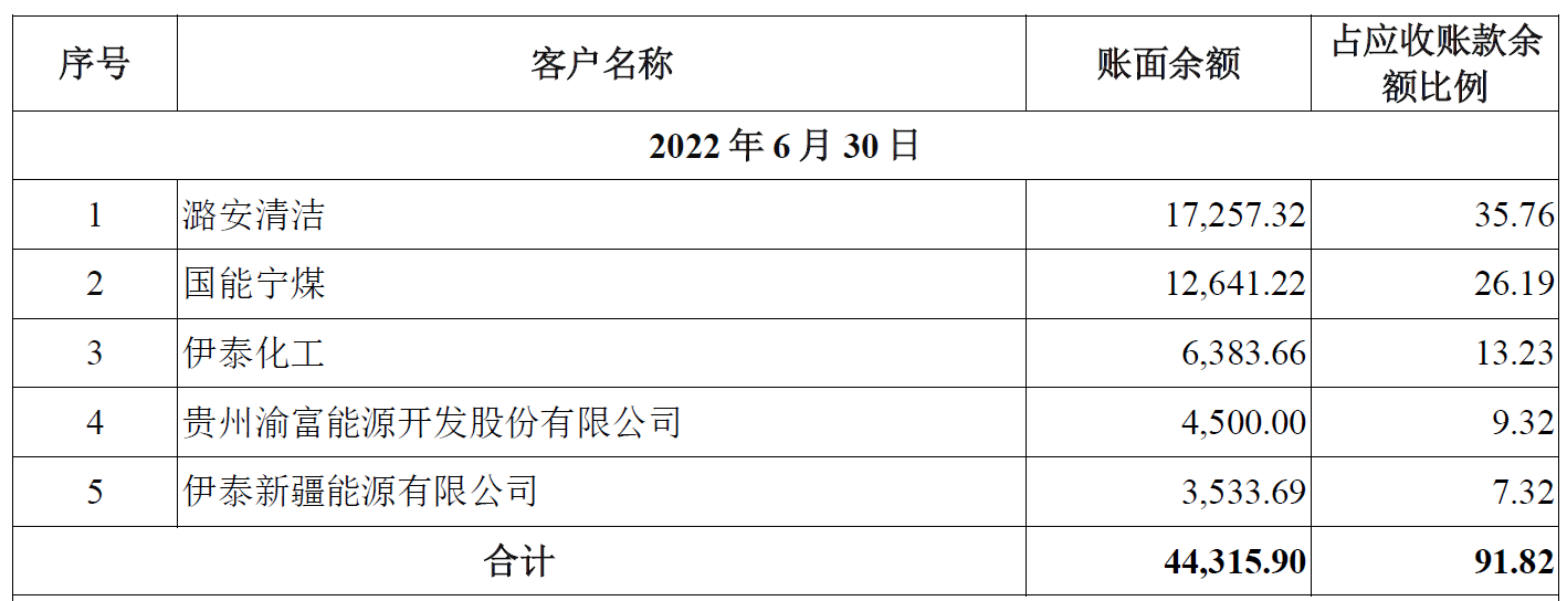 中科合成目前的应收账款也主要来自关联方。公司应收账款余额中排名第一的潞安清洁、排名第三的伊泰化工和第五大客户伊泰新疆能源有限公司均为关联方,三家合计占应收账款余额比例为56.31%,这一比例明显高于关联交易占收入的比例,关联方有侵占公司利益之嫌。
