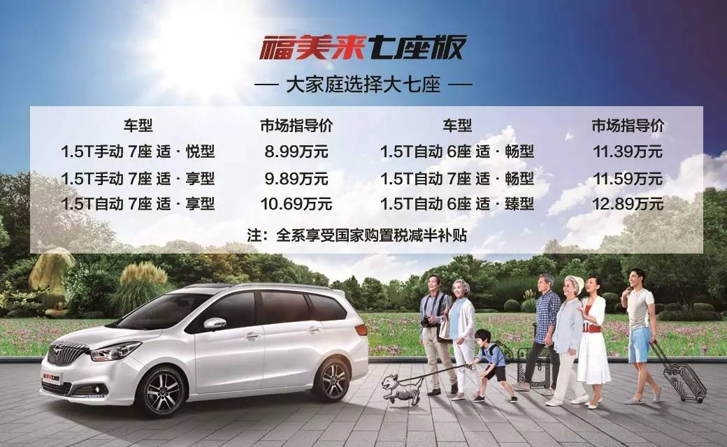 福美来7座版最终售价为8.99万-12.89万元。