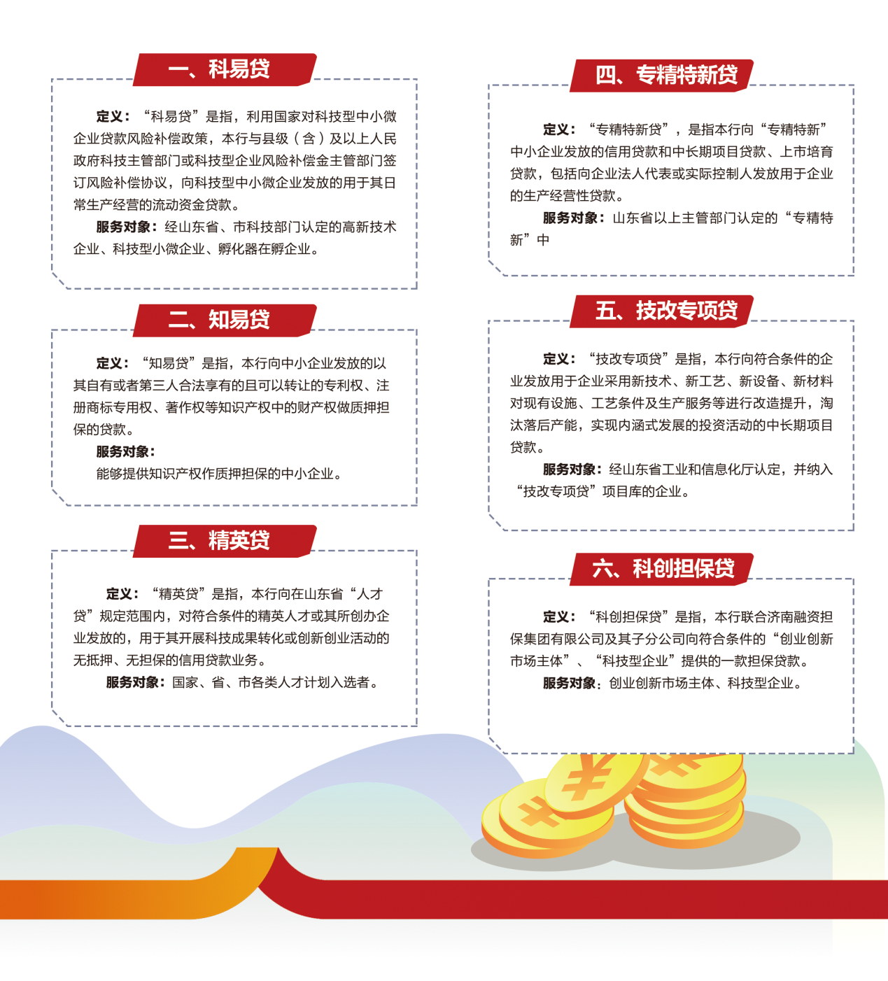 丰富担保手段,提升申贷获得能力。加强与山东投融资集团、济南融资担保集团的沟通协调,充分利用已经建立的线上电子担保函系统,搭建专项银担合作机制。联合制定专项业务产品,积极推广“见贷即保”业务发展模式,为科创企业申贷助力,大幅提升其融资获得便利性。